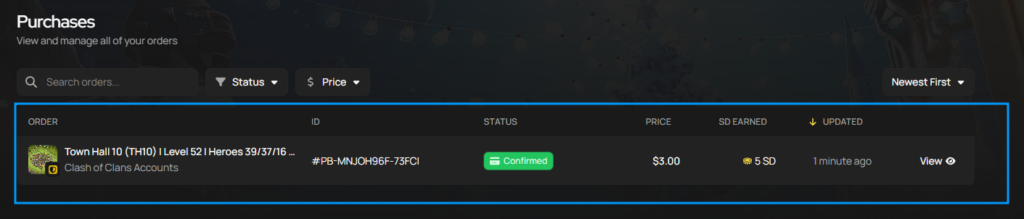 After purchasing your desired account, you should be redirected to the order page. If you’re having difficulty locating the order page and account details, please follow the guide below